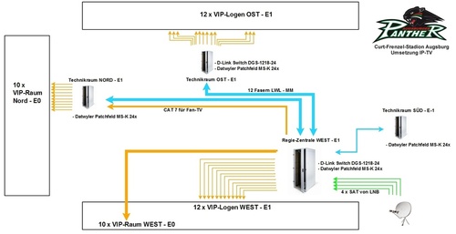 Seit 1995 beschäftigen wir uns professionell mit der medien-technischen Ausstattung von Sportstätten im In- und Outdoor-Bereich. Die Anforderungen sind dabei stetig gestiegen, wobei sich die technischen Möglichkeiten stark verändert haben. In einer modernen Arena erwarten sowohl Zuschauer als auch Sponsoren ein professionelles "Fan-TV" mit entsprechendem Signal-Management im gesamten Areal.