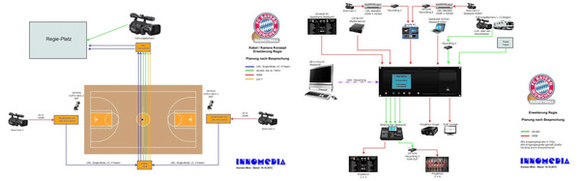 Eine moderne Arena verfügt inzwischen über eine Vielzahl unterschiedlicher Displays, die teilweise mit verschiedenen Inhalten versorgt werden müssen. Dabei sind oft große Kabelstrecken zu überwinden, die bei der Planung berücksichtigt werden müssen.